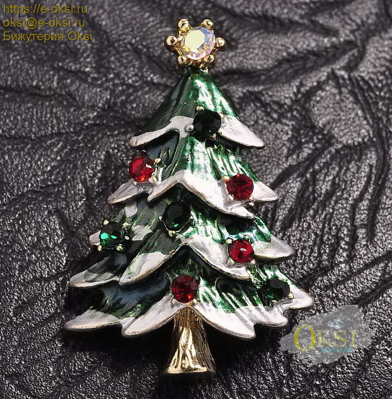 Яркая новогодняя брошь '' Ёлочка '' украшена ювелирной эмалью и сверкающими кристаллами. Размер 3 см х 2 см.