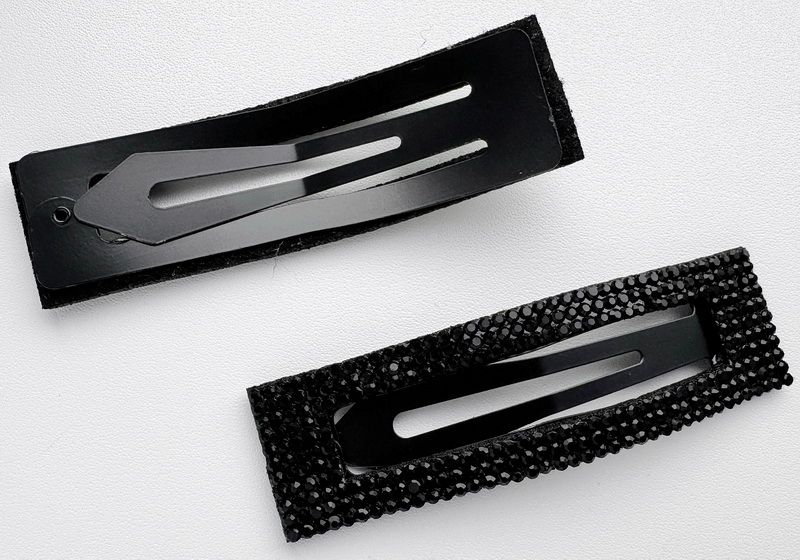 Стильная заколка клик - клак украшена сверкающими термостразами. Длина 8,5 см , ширина 2,8 см. Цена за 1 шт.