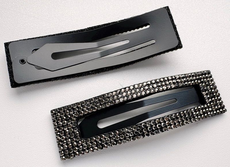 Стильная заколка клик - клак украшена сверкающими термостразами. Длина 8,5 см , ширина 2,8см. Цена за 1 шт.