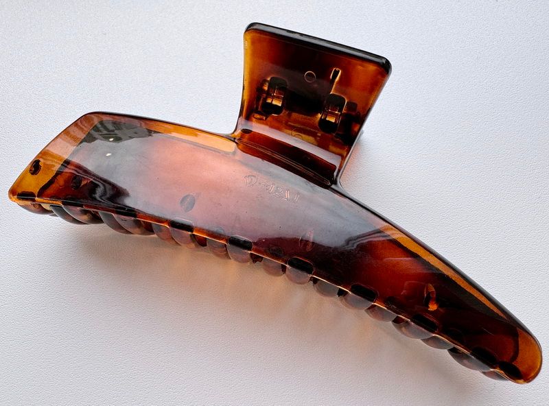Стильная заколка - краб из высококачественного французского пластика, глянцевого коричневого цвета. Длина 8,5 см.