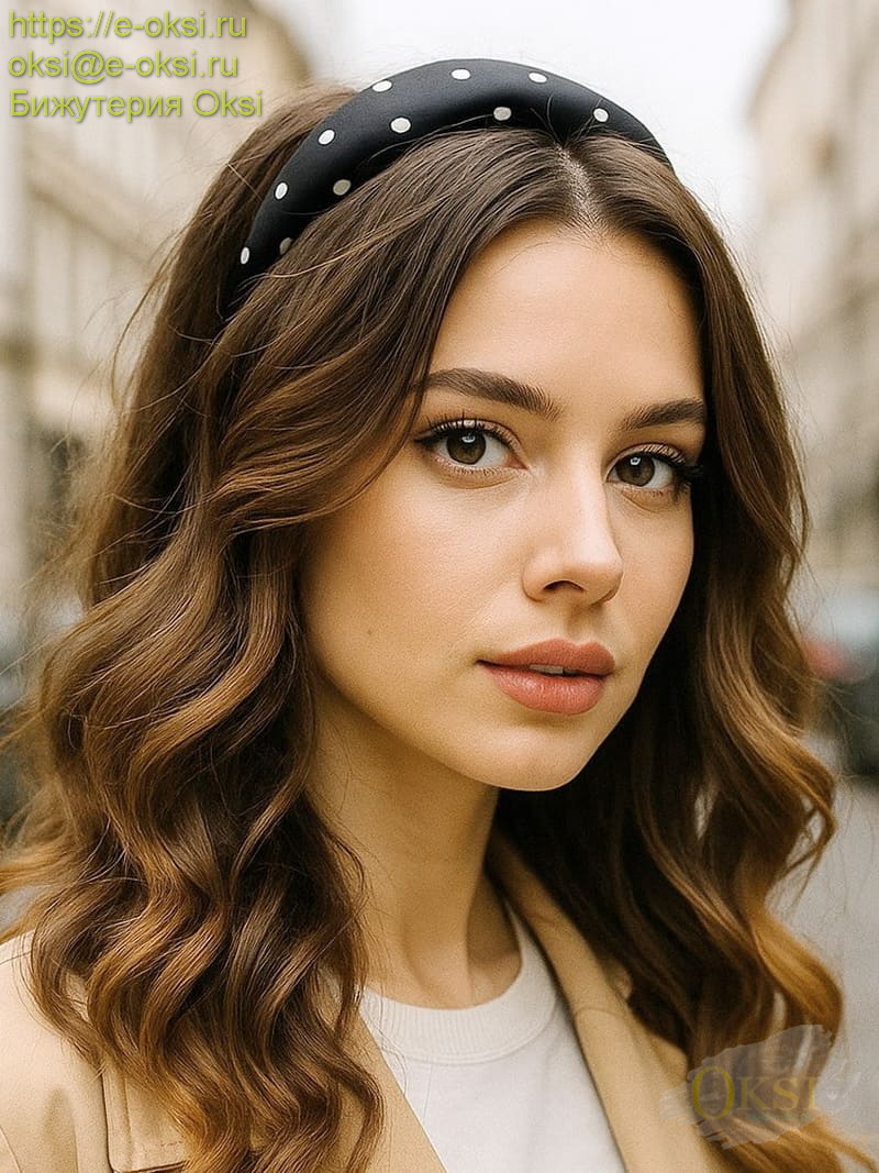 Очаровательный ободок в горошек. Универсальный, этот цвет подойдет к основным оттенкам одежды. Обязательно пригодится на каждый день или вечер, разбавит и подчеркнет любой скучный наряд. Лёгкий, удобный и комфортный, не жмёт и не давит голову.