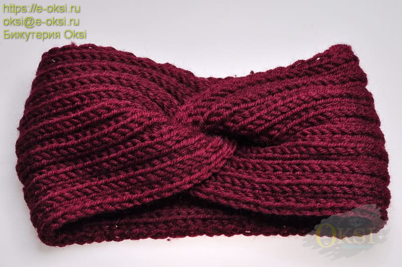 Вязанный ,тёплый аксессуар для волос ''Чалма'' вишневого оттенка . Длина аксессуара в нерастянутом виде 45 см., ( растягивается до 56 см). Ширина в нерастянутом состоянии 12 см.