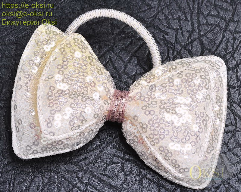 Крупный, качественный нарядный бант на резинке, украшен сверкающими пайетками нежно - абрикосового оттенка. Внутри банта прослойка из полорона, что создает дополнительный объем и воздушность . Размер банта 10,5 см х 6,5 см. Диаметр резинки 5 см. Производство Корея.