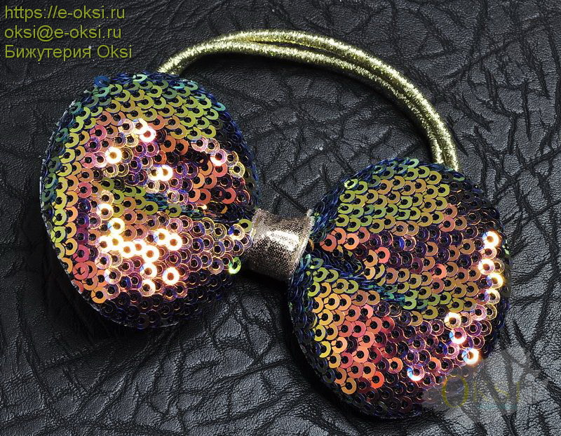 Яркий, качественный бант на резинке, украшен сверкающими пайетками радужного цвета. Внутри банта прослойка из полорона, что создает дополнительный объем . Размер банта 8,5 см х 5 см. Диаметр резинки 5 см. Производство Корея.