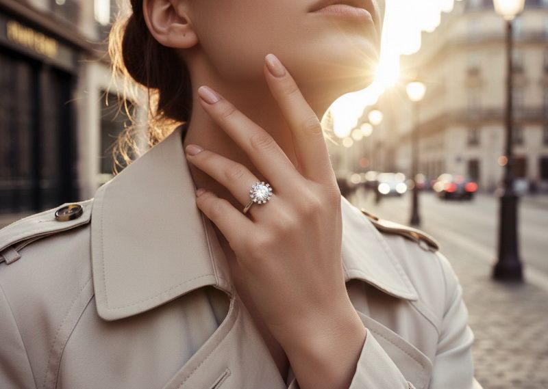 Крупный кристалл ( 12мм в диаметре), в обрамлении 12 фианитов. Качественное родиевое покрытие серебряного цвета. Регулируемый размер 18 - 19.